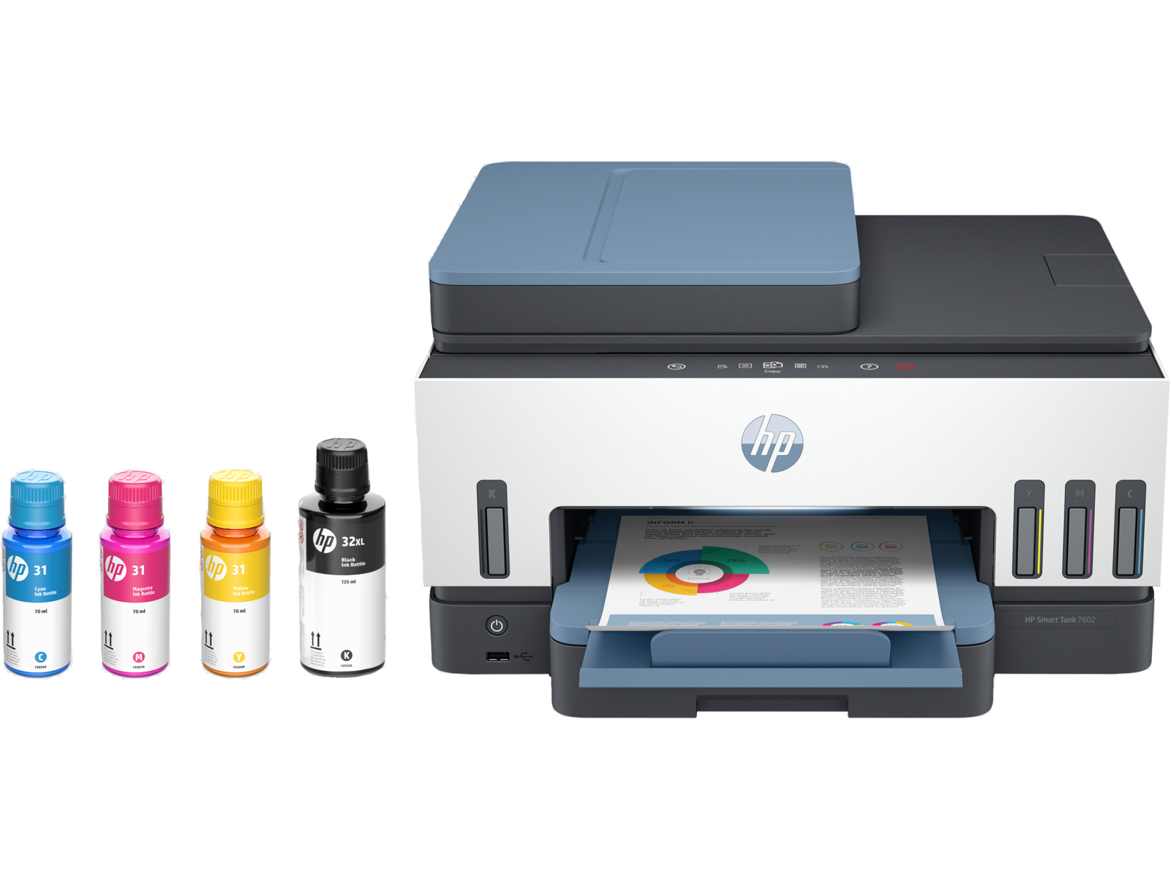 | Replacement Inks | HP 32XL Black (~6,000 pages), HP 31 Cyan/Magenta/Yellow (~8,000 pages each) |